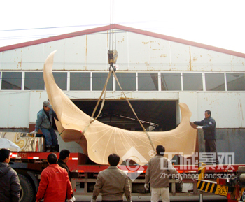 由于雕塑体积较大,数量又多,路途遥远,经厂里研究,商定将雕塑运达现场后进行拼装再上色。这样虽加大了难度,但却能保正雕塑的完整性,防止其在漫长的运输过程中造成的不必要的损伤。7日上午,运输的车辆整装待发,大型吊车将雕塑各部件安放到运输车辆上,待一切固定好,车辆离开了南京,驶向湘潭,开始了长达一千多公里的路途。