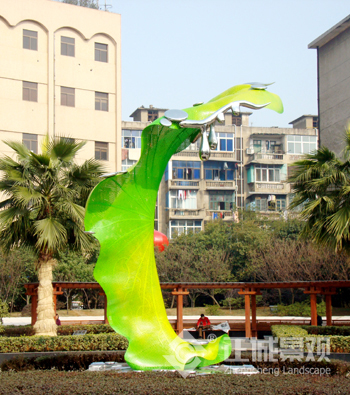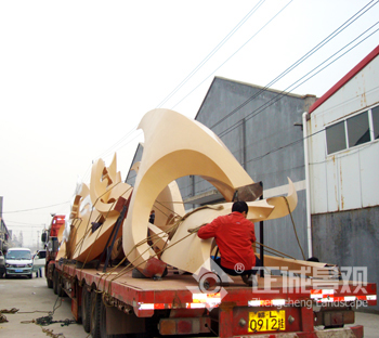 双拥路通过提高绿化面积、绿地率,增加植物层次,提高绿视率,并在双拥广场新增以“鸟”引吭高歌的抽象造型,配以众鸟舞动的“朝”雕塑和以一颗种子萌芽的形态为造型,体现生命之美的“萌”雕塑,共同打造出以“生态和谐”为主题的城市绿脉。下面就向各位朋友介绍一下整个运输、制作和安装过程。