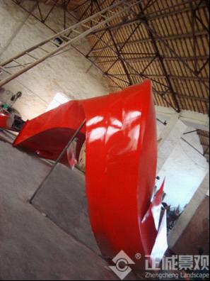 由于雕塑体积过大,不便于长途运输,经与客户协商,将雕塑分为三部分,在运到雕塑安放点后在现场进行安装焊接。在雕塑到达目的地后,雕塑师傅们顾不得休息,就马上投入到雕塑的安装过程中。客户准备的起吊机马上将雕塑从车上吊至地面,师傅们此时已在旁边严阵以待,雕塑在地面安置妥当后,师傅们马上开始了进行焊接工作。在烈日下,雕塑师傅经过几小时的拼装和焊接,终于完成了安装工作的一部分。
