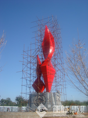 这次正诚为河北开滦矿务局制作的“百年开滦”主题雕塑,其中就蕴含了河北开滦矿务局悠久的历史底蕴。雕塑高18.78米(不含基座),基座6米见方高3.5米,雕塑材质为3042B不锈钢,表面喷红色亚光漆(氟碳漆)。基座材质为3042B不锈钢,表面喷黑色亚光漆(氟碳漆),基座四座又以集团标志相点缀,突出了雕塑整体的厚重感。以下为雕塑现场图:
